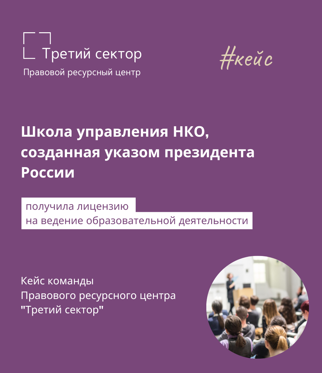 Школа управления НКО при Фонде президентских грантов получила лицензию на ведение образовательной деятельности. Сопровождением процедуры лицензирования занимались юристы Правового ресурсного центра "Третий сектор". Руководителем проекта выступила Юлия Абзалова, заместитель директора центра.