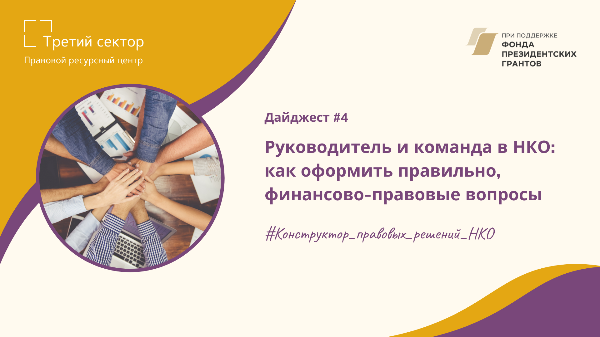 На эти и другие вопросы вы найдете ответы в нашем новом дайджесте "Руководитель и команда в НКО: как оформить правильно, финансово-правовые вопросы".