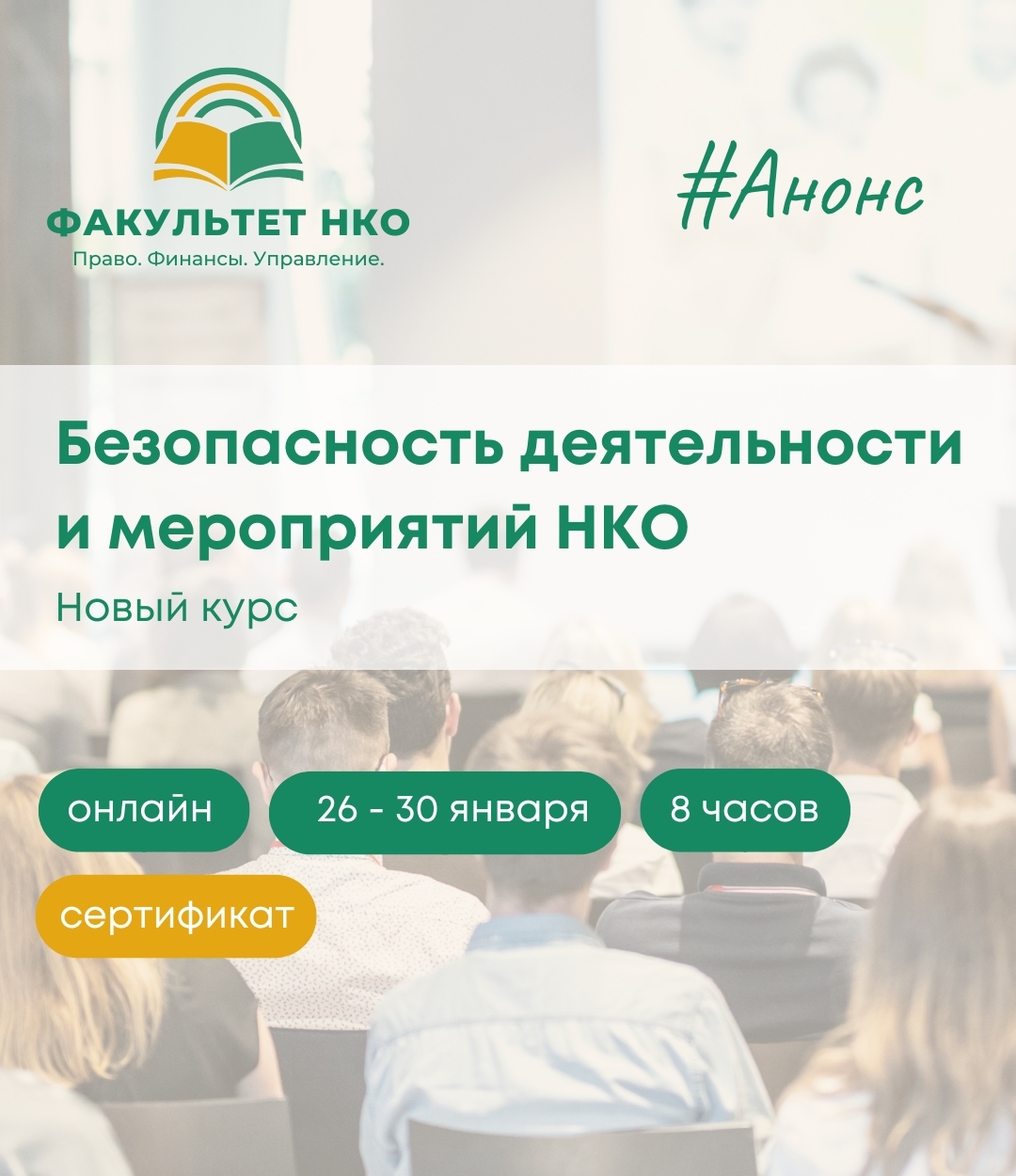 Факультет НКО приглашает на новый курс по безопасности деятельности и мероприятий НКО.